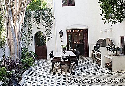 Vervaag grenzen door elegante tegels in een buitenruimte te plaatsen. Speel de kleuren en texturen van de gevel van je huis af bij het selecteren van tegels om vloei en eenheid te creëren. (Foto via Food52)