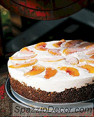 Stap 4: Om de cake te assembleren, giet de vulling in de gekoelde korst. Versier, indien gewenst, de bovenkant van de taart met extra perzikplakken. Bevries de cake minstens 4 uur voor het opdienen. Over 20 minuten voordat je van plan bent om de taart te serveren, haal hem uit de vriezer en plaats hem op het aanrecht om je cake te verzachten (de cake kan meer of minder tijd kosten om te verzachten, afhankelijk van het weer). Hoe zachter de cake wordt, hoe lekkerer en minder ijzig het is.
